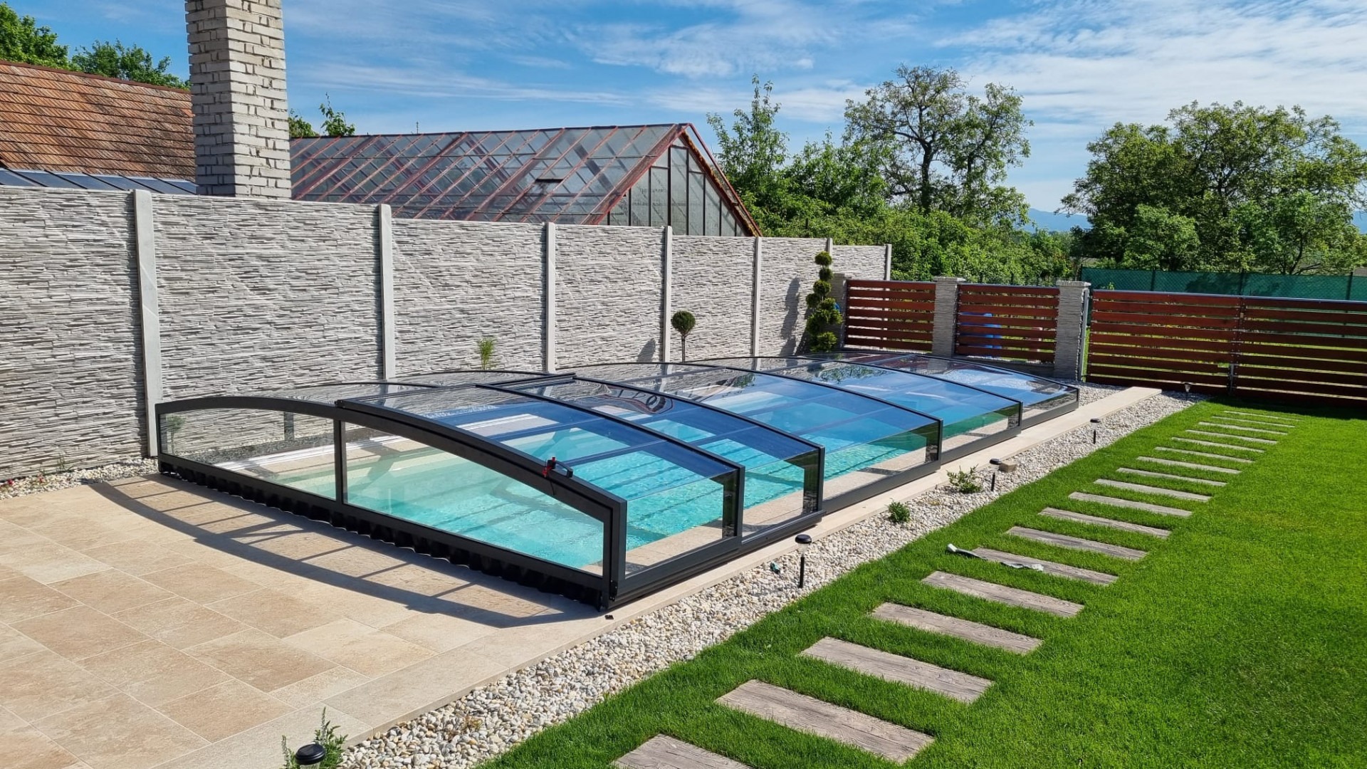 There is no single, universally best solution—it depends on your priorities. If you want a discreet solution for a smaller garden with the primary goal of protecting the water and conserving heat, the best choice is a low-profile sliding roof with polycarbonate panels. If you want year-round swimming with full comfort and freedom of movement under the enclosure, opt for a high sliding enclosure. In any case, it’s better to invest in a higher-quality enclosure from a trusted manufacturer with a long warranty.