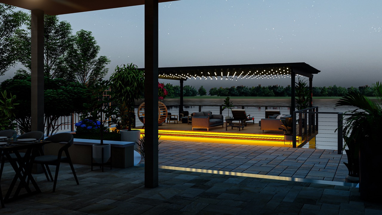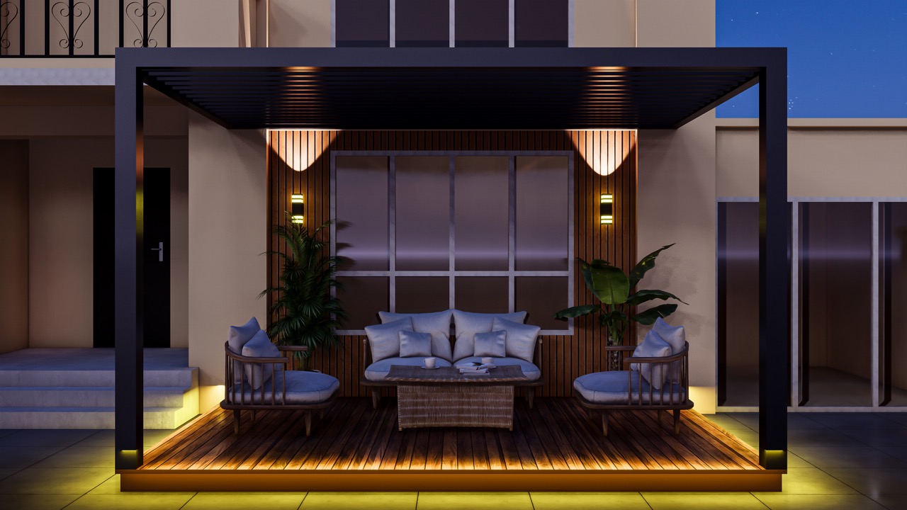 In our language, cold and sharp light is more suitable for an office. A pergola is something like your private summer pub. It looks best with weaker, subdued, and warm light. It goes better with crickets and is pleasant to relax in.