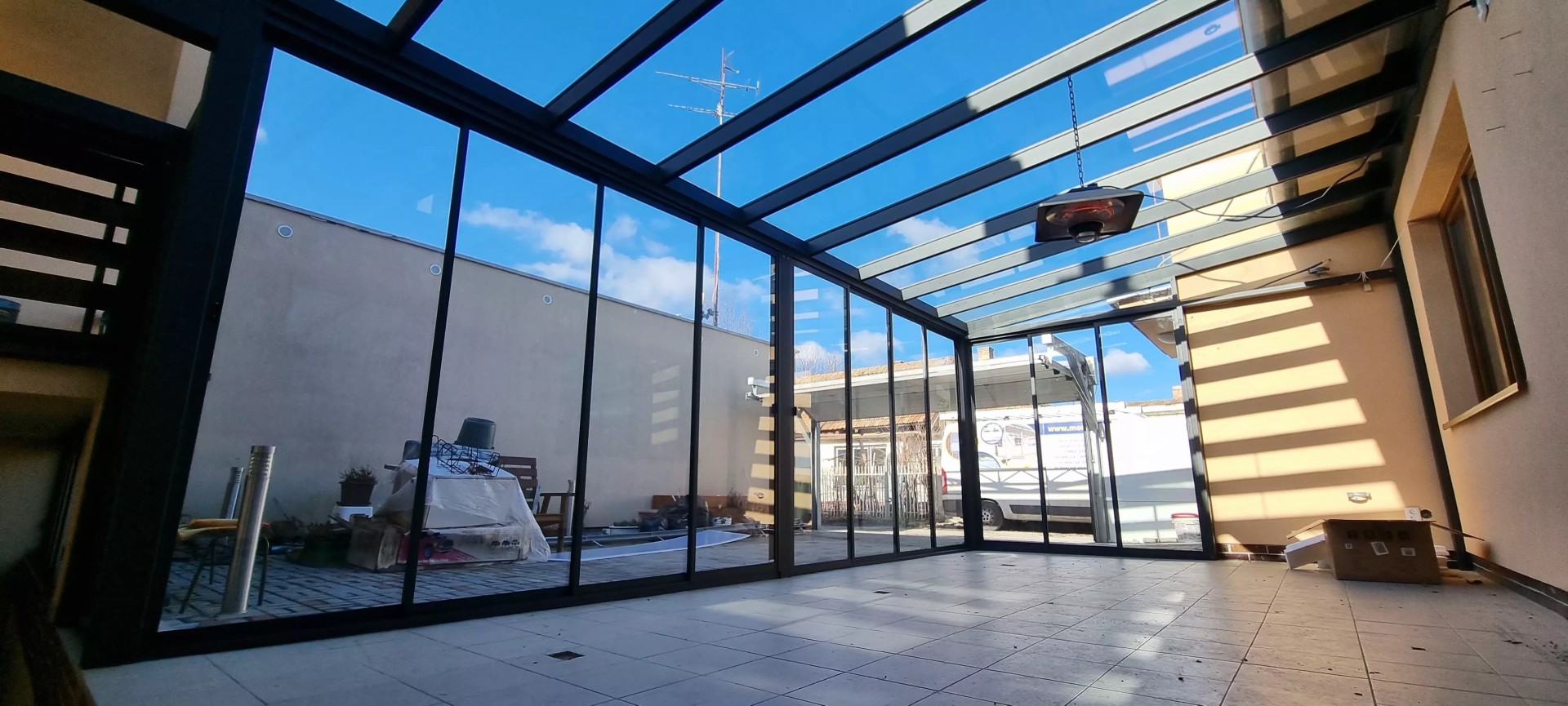 Here comes the crowning glory of the entire structure – the roof. If you have rotating slats (as in bioclimatic models), the installers precisely fit each one. Each slat has its own direction, slope, and place. For pergolas with a fixed roof, a filling (often polycarbonate) is installed, which is inserted into the profiles. And if you are also planning glazing, the structure is adapted so that everything fits together.